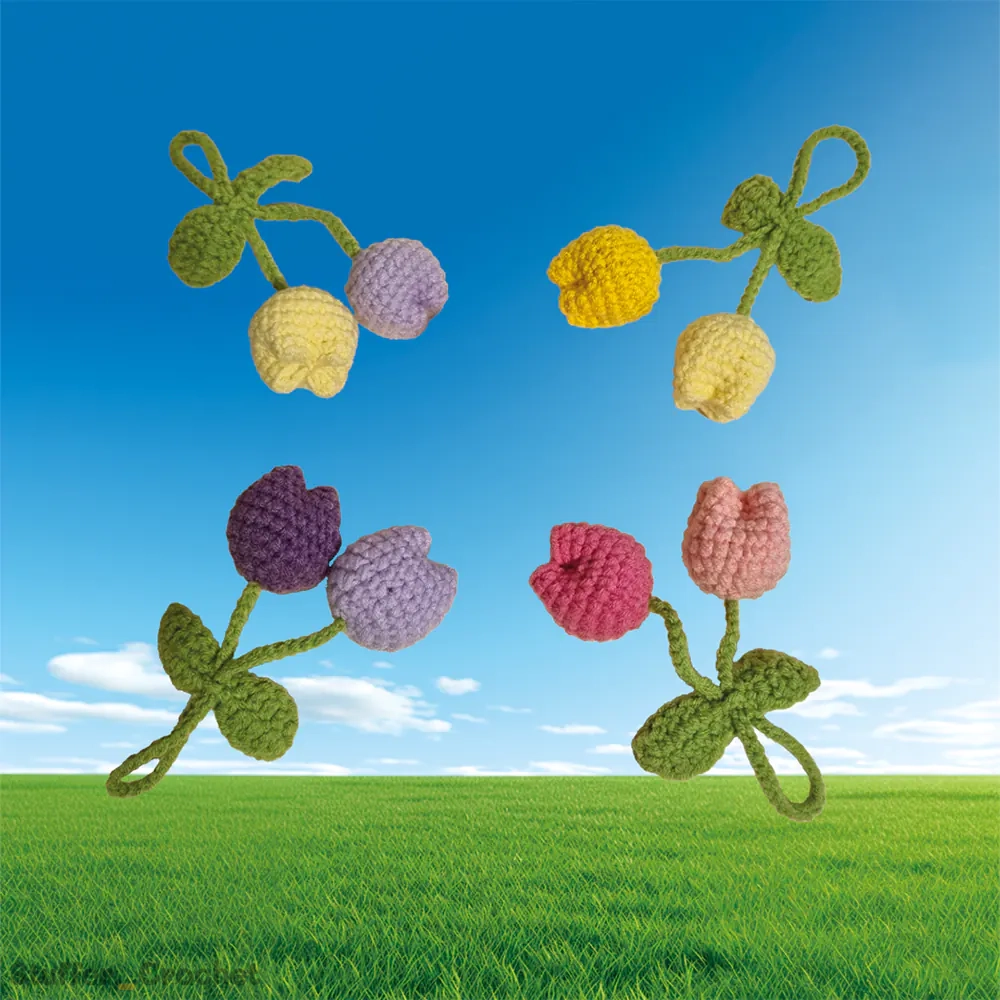 Handmade Touch: Intricately hand-crocheted with two tulip blooms and delicate leaves, designed for durability while keeping its charming shape.