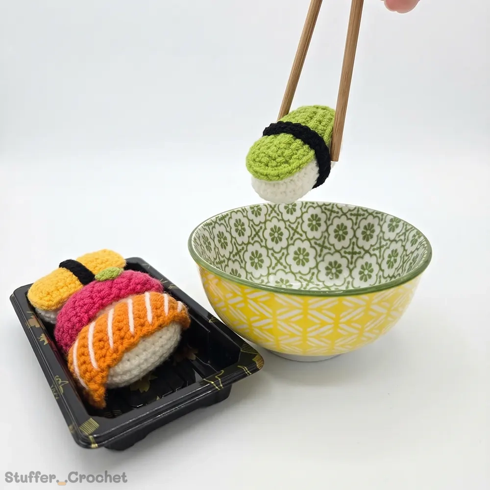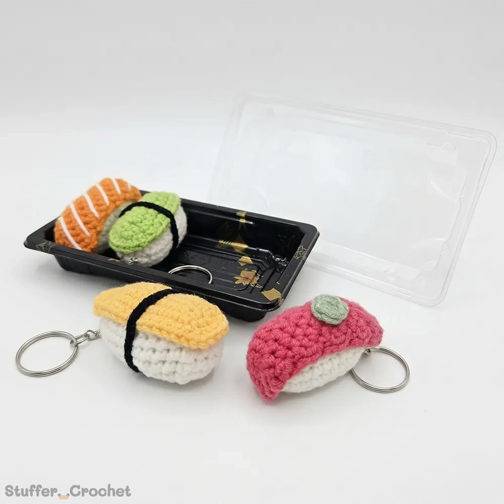 Handmade Touch: Each maki is carefully hand-crocheted with detailed ingredients, capturing the playful spirit of classic sushi rolls in miniature form.