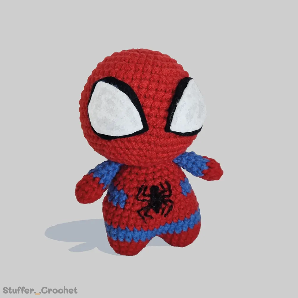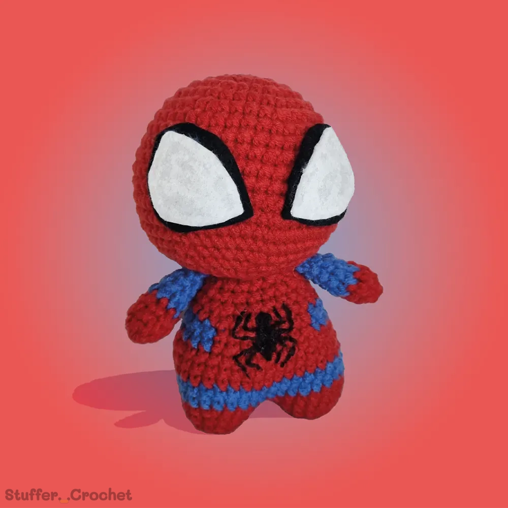 Designed with the signature red and blue mask style and web-inspired details, carefully crocheted to capture the recognizable superhero look in a cute, collectible form.